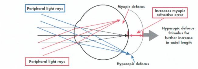 It is thought peripheral defocusing contributes to the ongoing increase of myopia once children start to wear glasses.