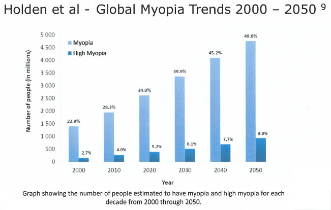 In the last 40 years myopia has risen from 16% of the population to currently 32%. It is expected to reach at least 50% of the population by 2050.